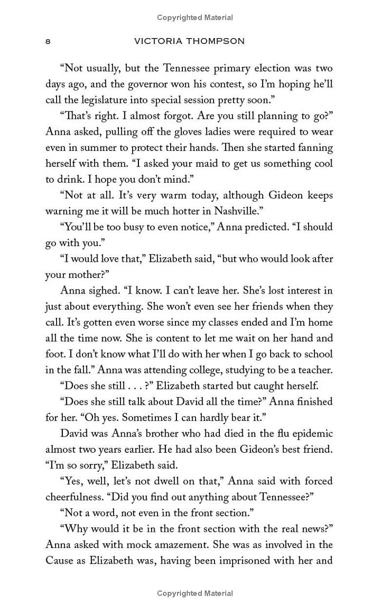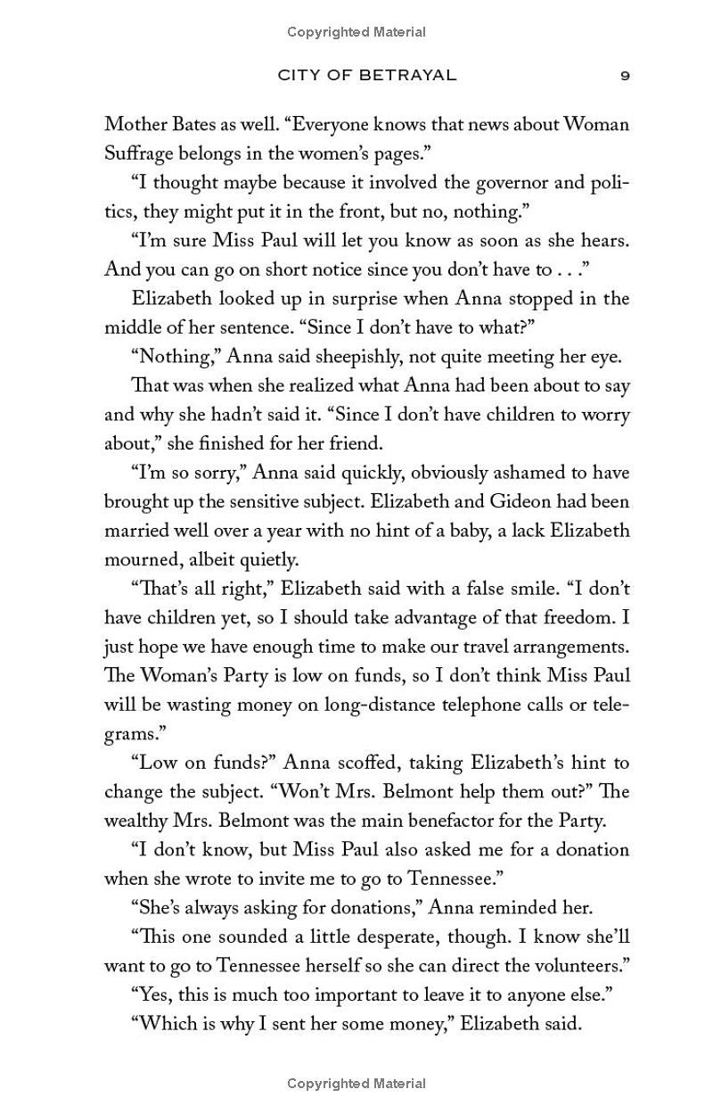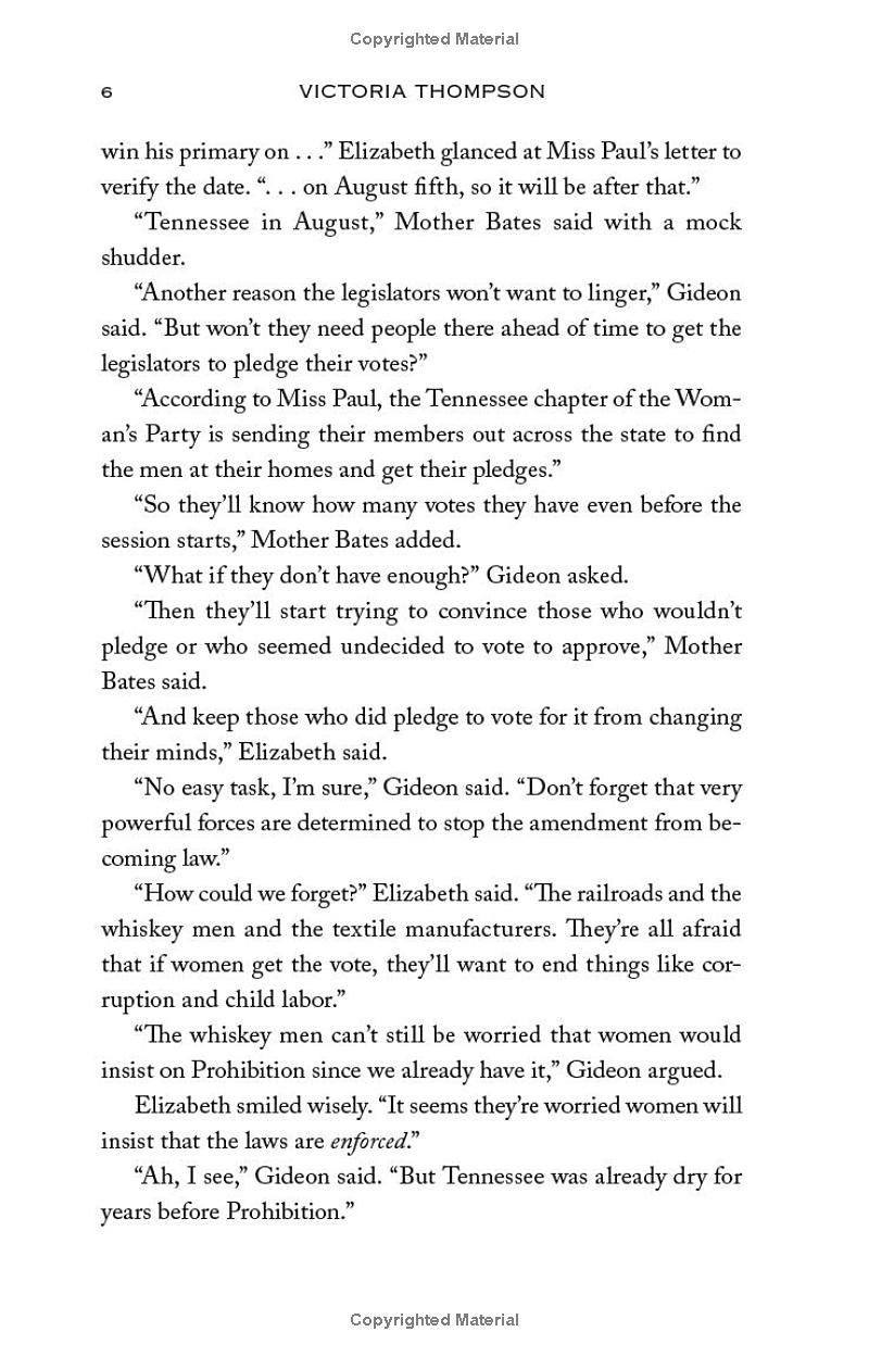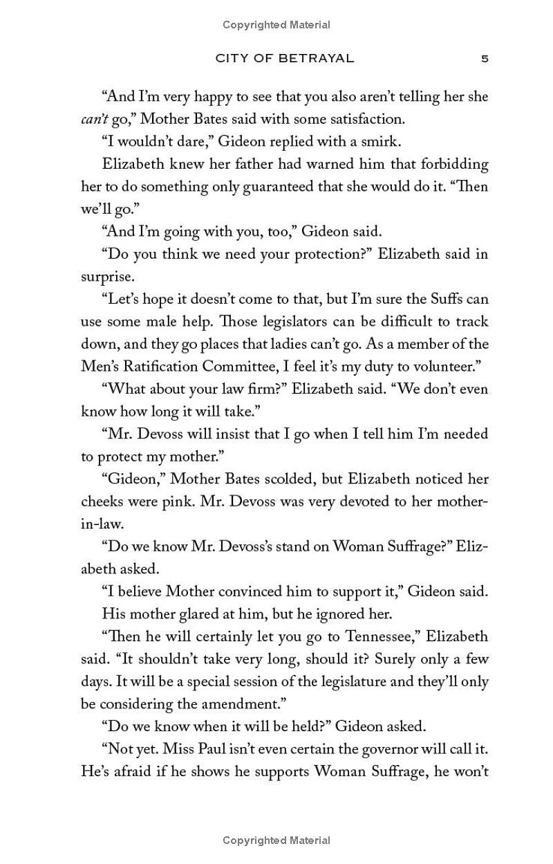 Elizabeth’s ability to interact with difficult men and to persuasively explain all the advantages of allowing women to vote—all skills she perfected as a grifter—have made her a valuable member of the team. But she would never have expected the lengths to which some would go to keep the vote out of women’s hands. She’ll need to devise the perfect con or the suffragists’ life’s work could all be for nothing.