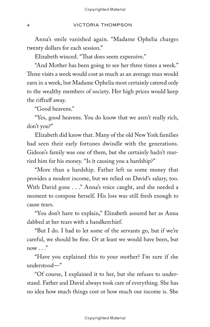 In this all-new Counterfeit Lady Novel from USA Today bestselling author Victoria Thompson, newlywed Elizabeth Miles must use her unlawful skills to expose a dangerous charlatan.